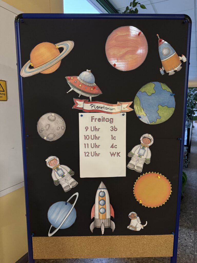 Während der Woche konnten alle Klassen ihrem Alter entsprechend eine Vorführung über die Welt der Sterne oder dem Leben auf einer Raumstation besuchen.